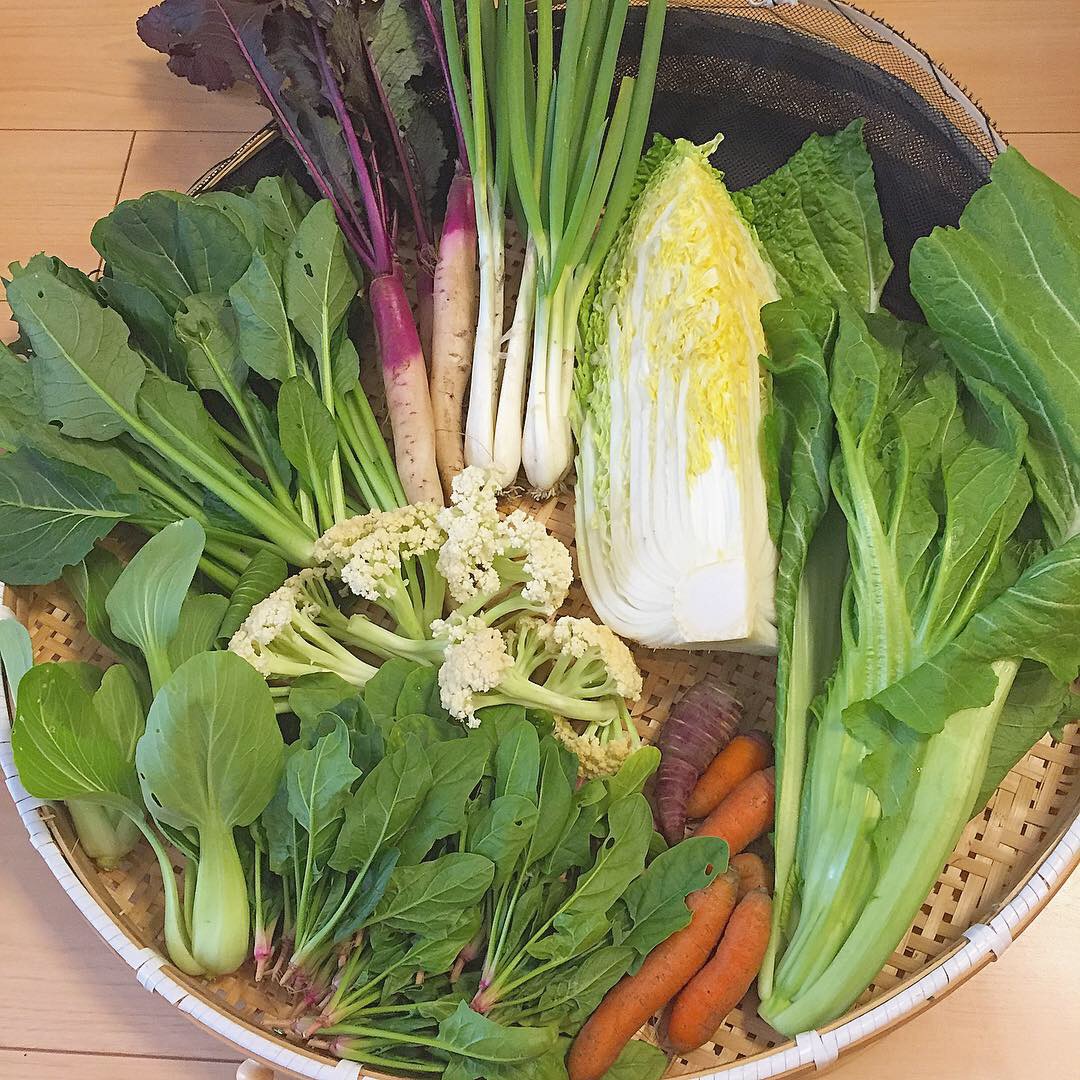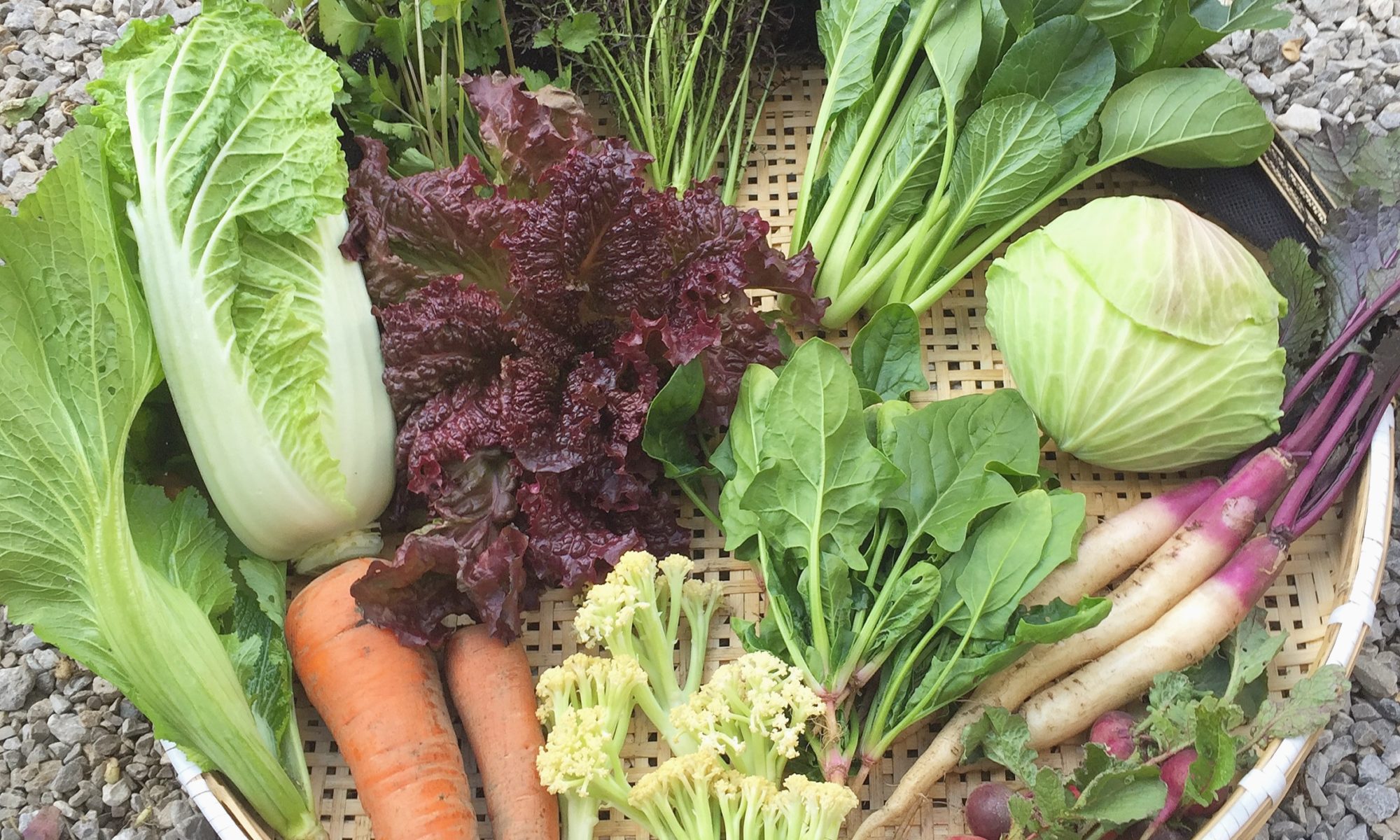 ・小松菜・ほうれん草 ・高菜 ・赤リアスからし菜・カリフローレ ・日野菜カブ ・人参 ・パクチー ・サニーレタス ・ラディッシュ ・キャベツ ・白菜