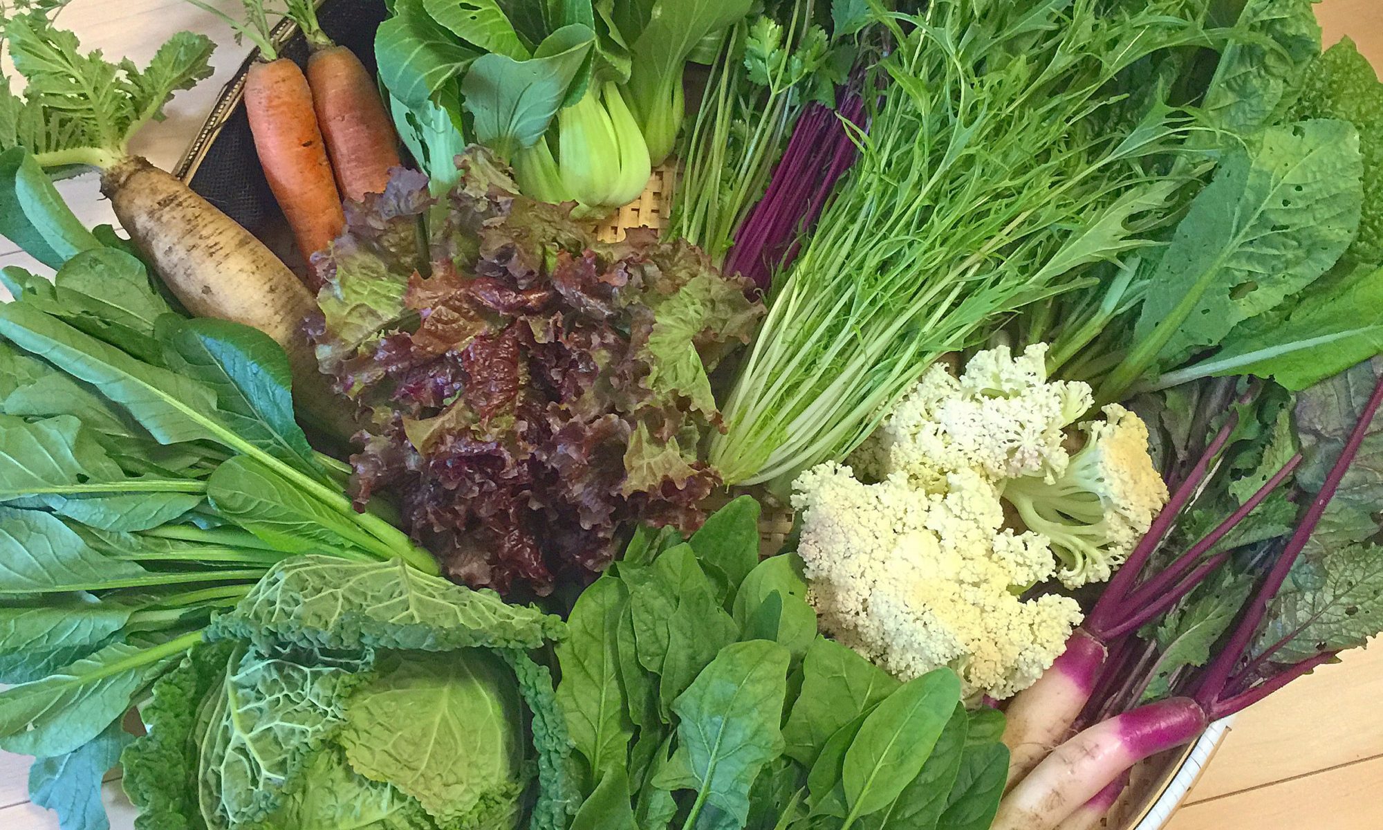 ・小松菜・京水菜 ・ほうれん草 ・パクチー・かつを菜 ・カリフローレ ・日野菜カブ ・サニーレタス ・チンゲンサイ ・人参 ・三浦大根・サボイキャベツ