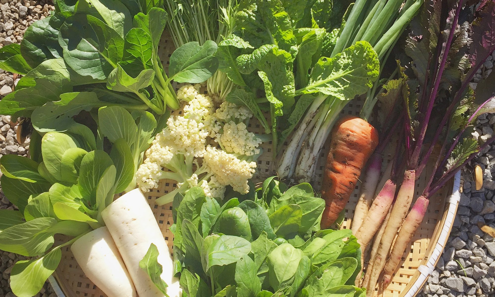 ・小松菜・京水菜 ・ほうれん草 ・かつを菜 ・カリフローレ ・日野菜カブ ・チンゲンサイ ・黒田五寸人参 ・三浦大根・九条ネギ