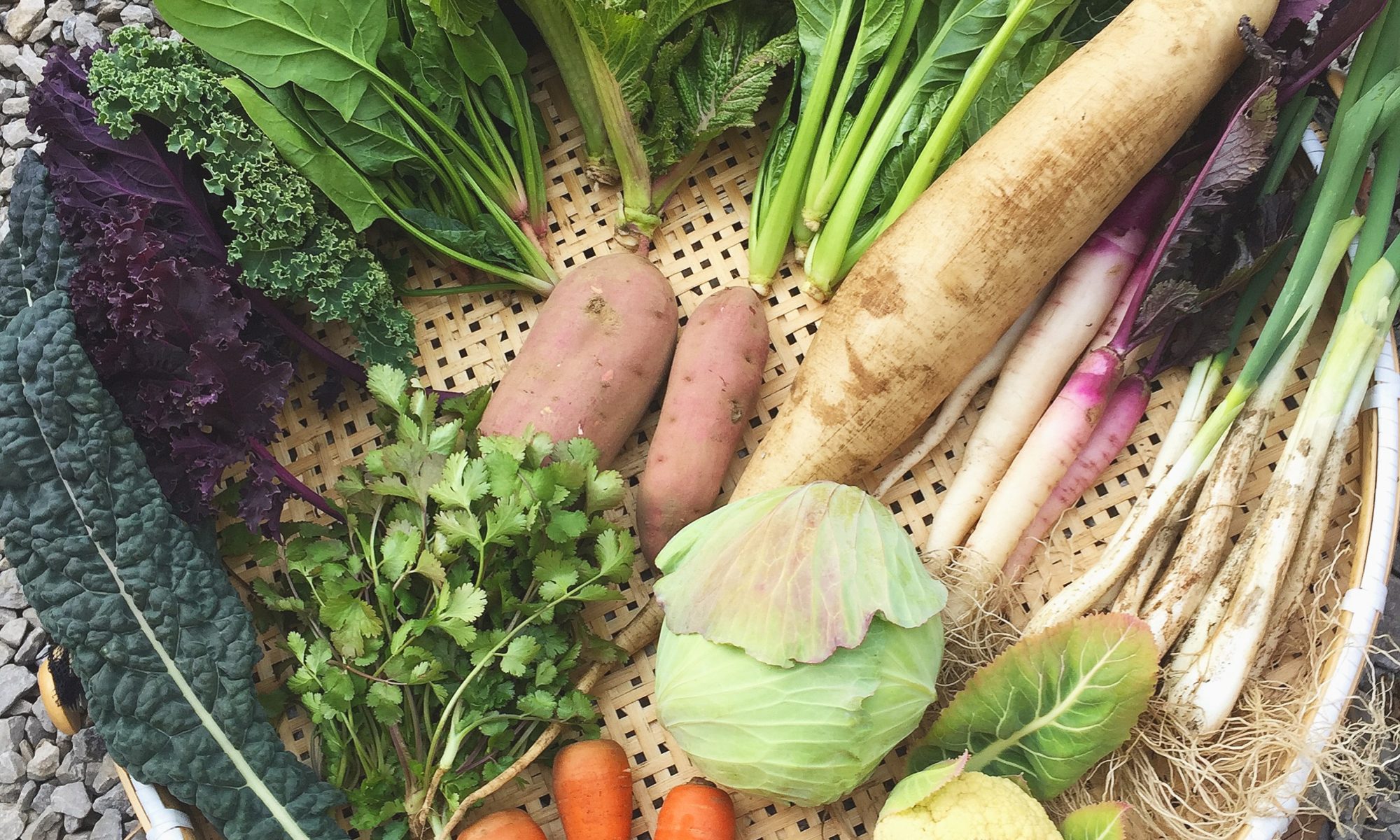 ・小松菜・ほうれん草 ・高菜 ・カリフラワー ・日野菜カブ ・人参 ・パクチー ・キャベツ ・ケール・カーボロネロ・三浦大根 ・ネギ ・サツマイモ