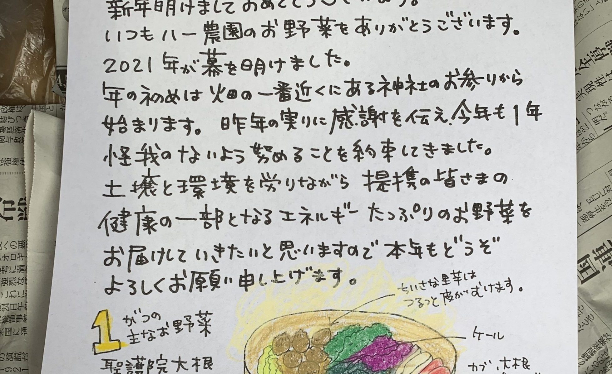 ・白菜・キャベツ・聖護院大根・聖護院カブ・人参・ケール・ネギ・ジャガイモ・玉ねぎ・脇芽ブロッコリー・里芋